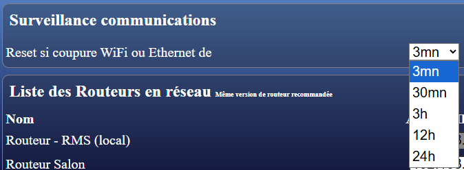L’ESP32 teste en permanence les communications via Wifi ou Ethernet. En cas d’arrêt il se reset (redémarre) au bout du temps spécifié. Ceux qui arrête le WiFi la nuit doivent mettre 12 ou 24h.
