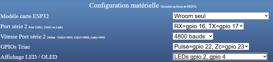 • les broches (Gpio) utilisé par le port série 2 si besoin vers le Linky, UxIx2 etc,