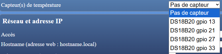Il est possible de conditionner la régulation suivant la température d’un des canaux. Il faut sélectionner la source de température de l’ESP32 ou d’un autre situé sur le même réseau de la maison et présent dans la liste affichée.