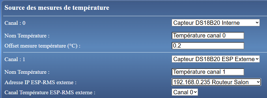 • un capteur DS18B20 externe connecté sur un autre routeur du réseau. Il faut préciser son canal.
