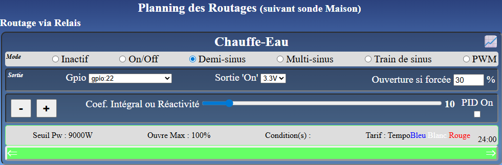 Dans des configurations à plusieurs relais, triacs ou routeurs, on peut mettre en place des stratégies de routage en fonction de la température, de l’energie déjà routé ou de l’energie manquante en fin de journée. La version 12 et au dessus du routeur offre ses possibilités à programmer une fois que vous aurez bien maitrisé le fonctionnement de base du routeur.