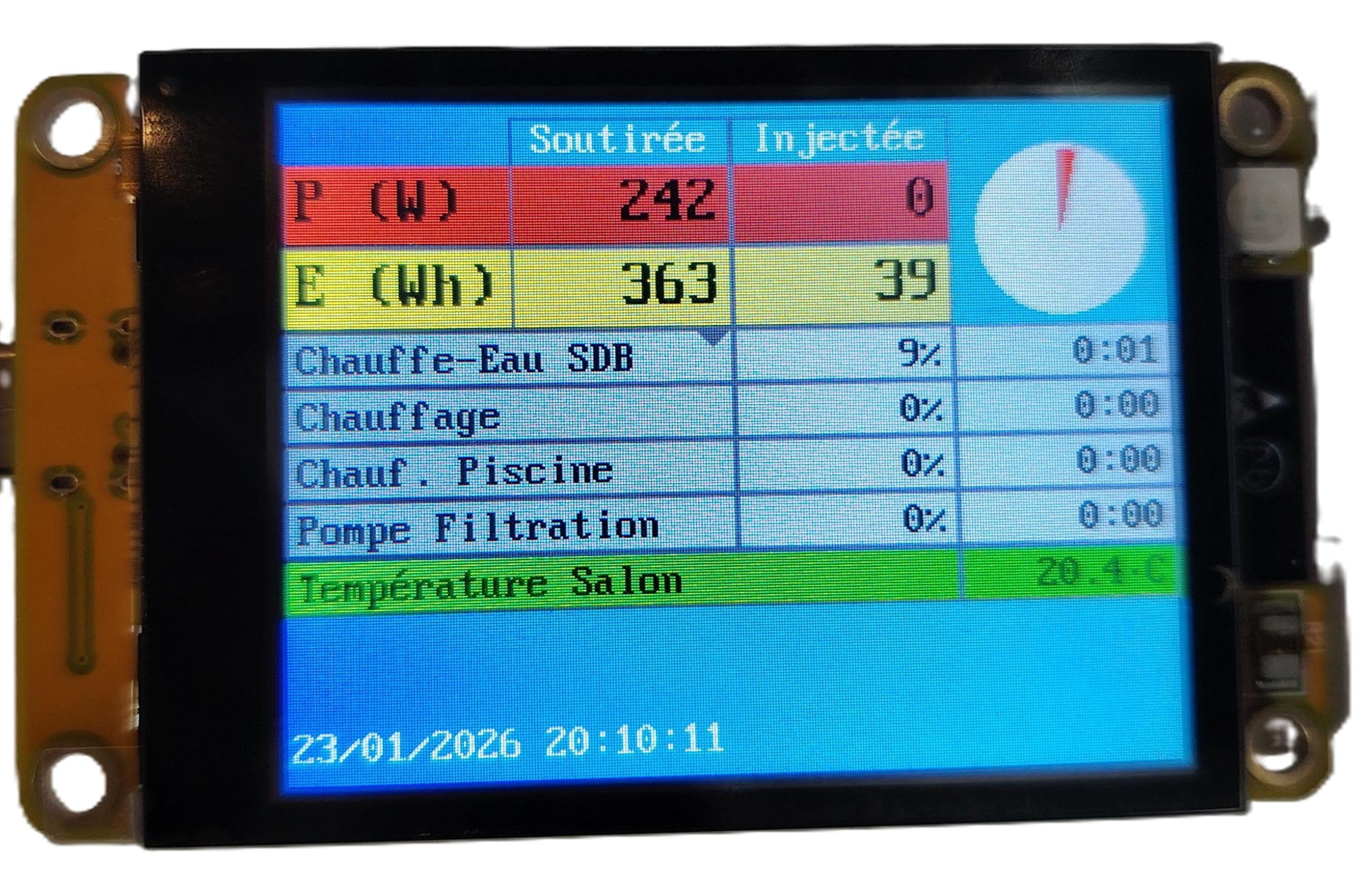 Nota: En l’absence de capteur branché : « Source non définie » . Des consommations en dent de scie sont simulés pour avoir des résultats en page d’Accueil.